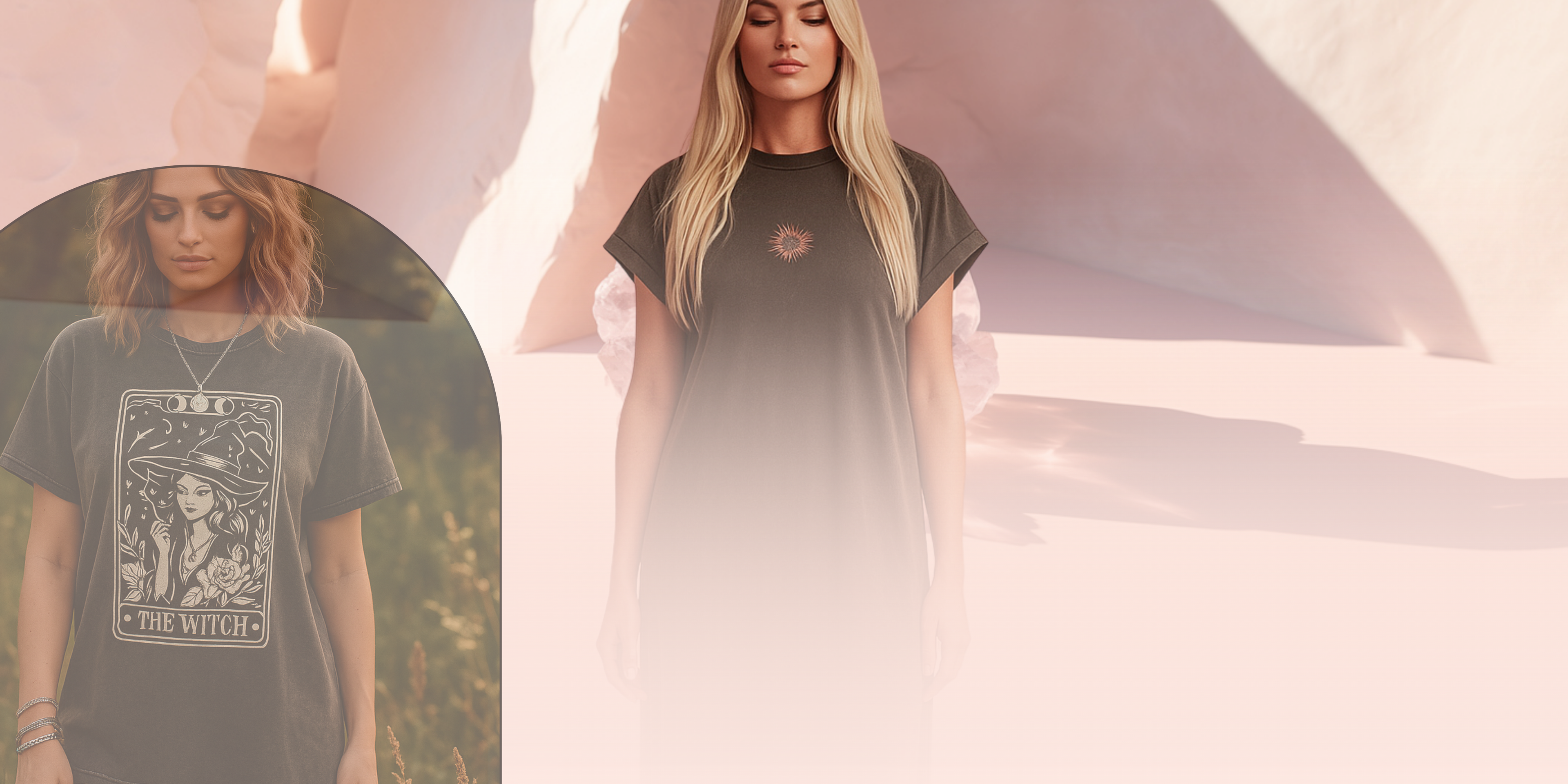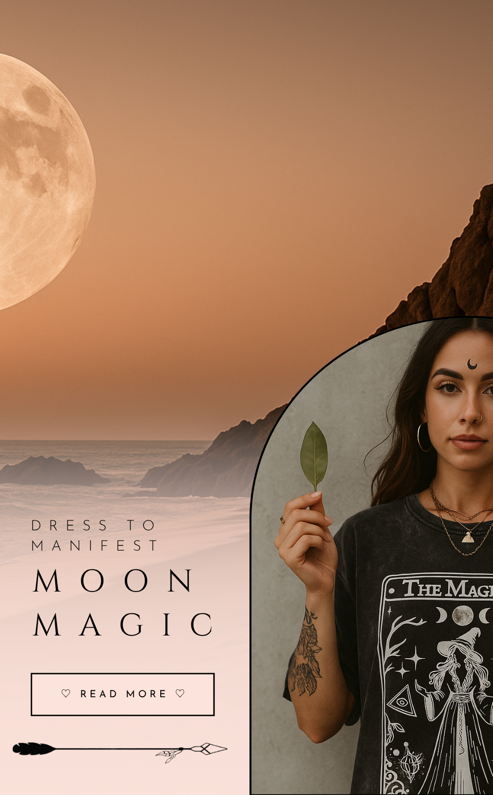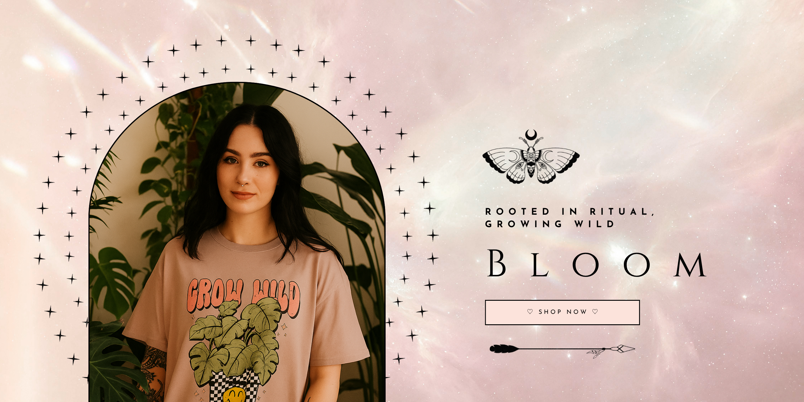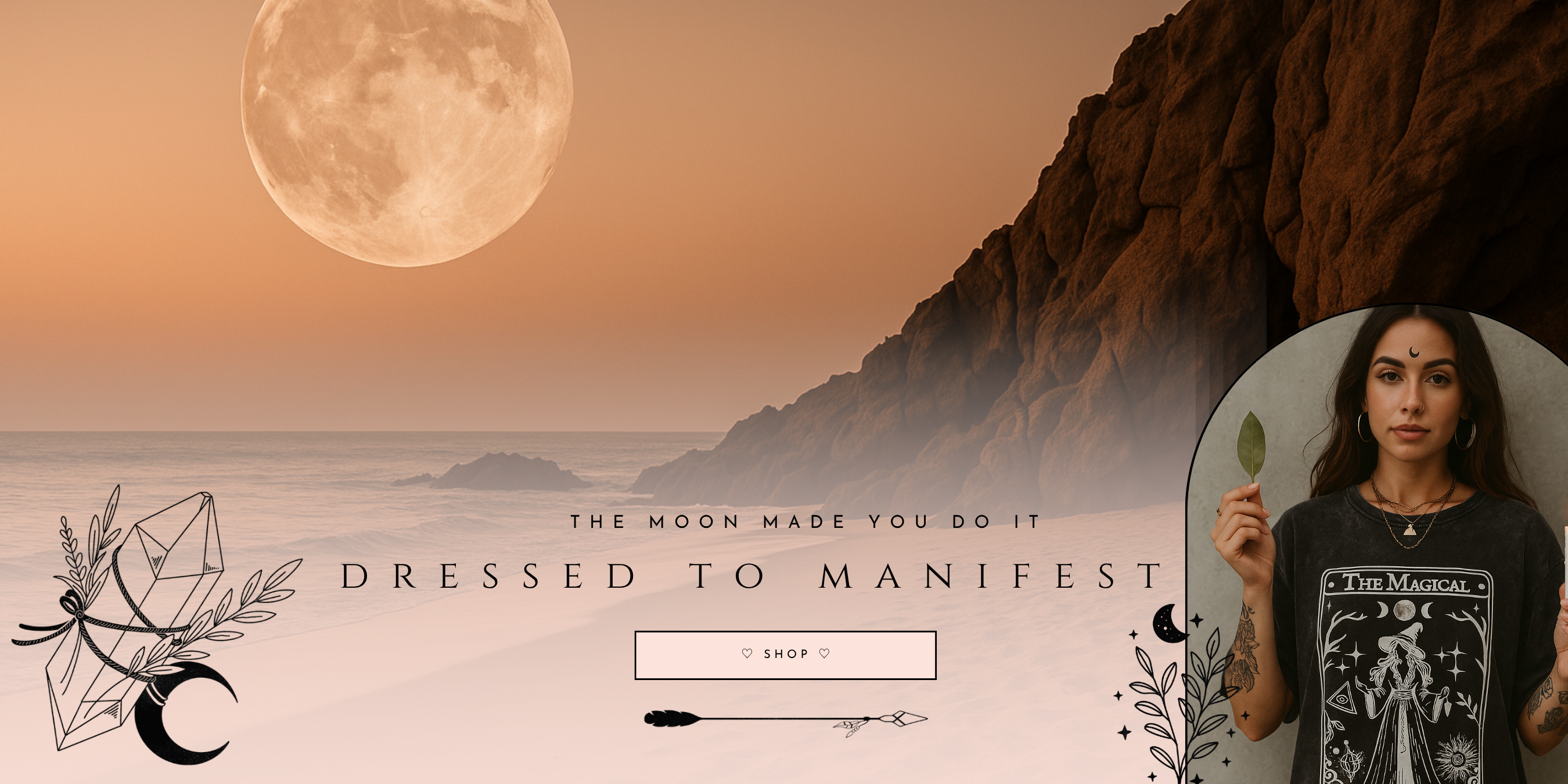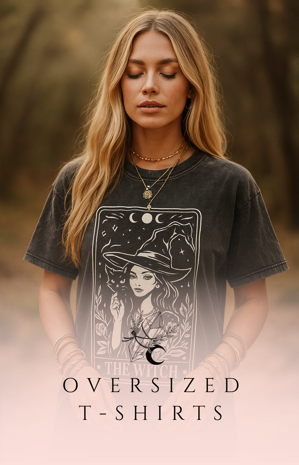 SHOP THE VIBEGenuinely oversized, size-inclusive, and made from premium 100% cotton. These tees are spiritual streetwear staples for witches, moon babes, and everyday magic-makers.