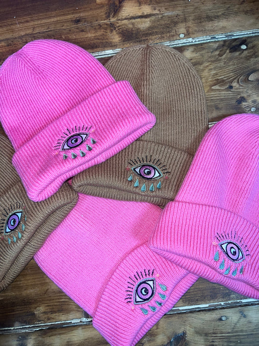 Evil Eye Super Soft Embroidered Adults Recycled Oversized Beanie