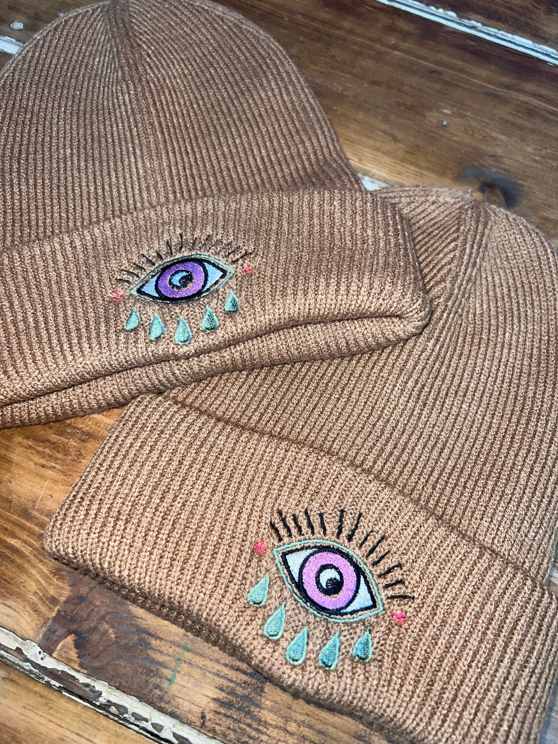 Evil Eye Super Soft Embroidered Adults Recycled Oversized Beanie