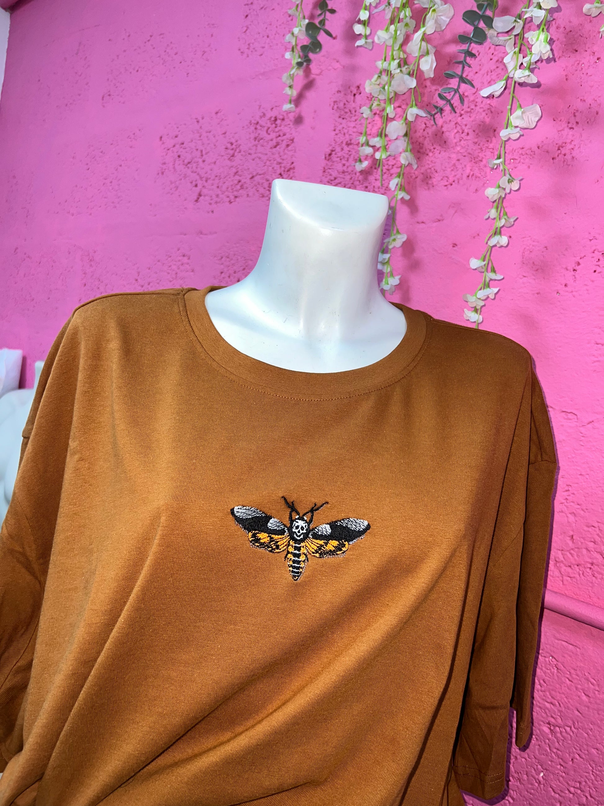Elevate your wardrobe with our premium oversized T-shirt, meticulously crafted from 100% cotton for unrivaled comfort and quality. Designed to be genuinely oversized and size-inclusive, fitting up to a UK size 32 or 5XL, it's the perfect choice for fashion-forward individuals seeking a comfortable yet stylish look. Embrace the edgy vibe with the acid wash design, ideal for enthusiasts of alternative fashion. This unique tee features an embroidered deaths head moth, adding a touch of intrigue and alternative design to your ensemble. Make a bold statement and stand out from the crowd with our oversized T-shirt. Shop now and redefine your fashion game with our alternative-inspired tee!