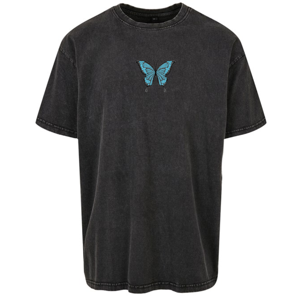Elevate your wardrobe with our premium oversized T-shirt, meticulously crafted from 100% cotton for unparalleled comfort and quality. Designed to be genuinely oversized and size-inclusive, fitting up to a UK size 32 or 5XL, it's the perfect choice for fashion-forward individuals. Embrace the edgy vibe with the acid wash design, ideal for enthusiasts of alternative fashion. This unique tee features an embroidered Morpho Blue Butterfly on the front, adding a touch of whimsy and elegance to your ensemble. Perfect for butterfly lovers and those who appreciate gothic style, this tee is a statement piece that transcends trends. Shop now and make a bold statement in alternative fashion with our oversized T-shirt!