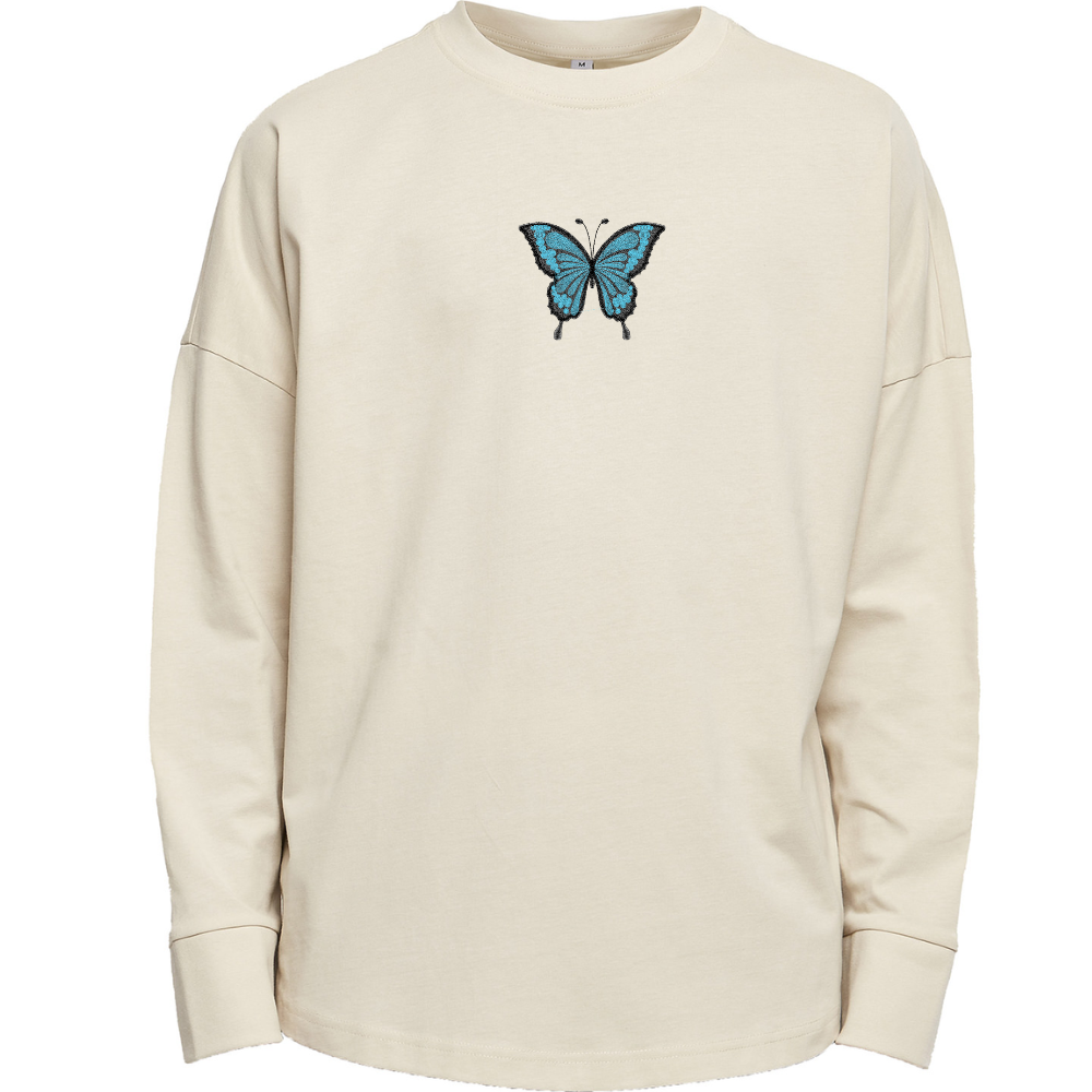Morpho Butterfly Embroidered Sleeve Premium Oversized Long Sleeve T-shirt